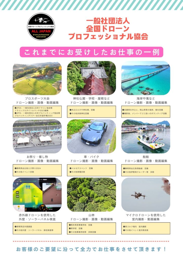 地域密着型から全国あらゆる場所のドローン事業を行っております。